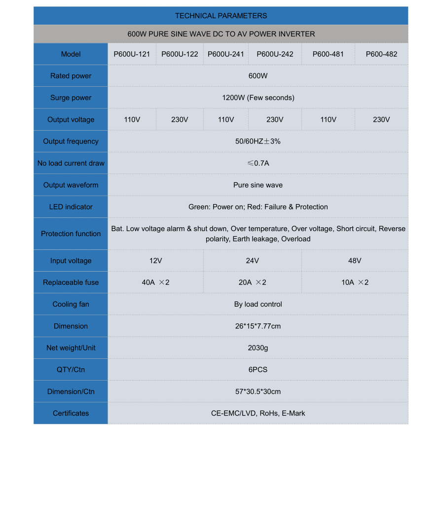 600W Pure Sine Wave DC: n vaihtovirta -inverteriin